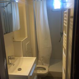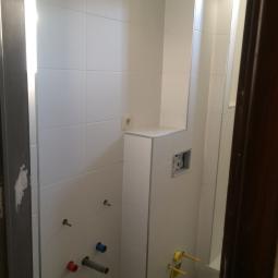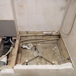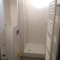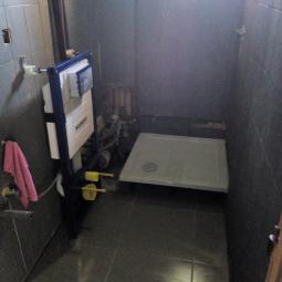 Rénovation d'une salle de bain avec douche, WC suspendu et meuble de salle de bain